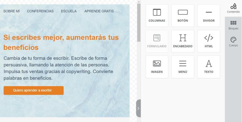 Para este artículo he creado una landing de venta de servicios. En concreto venta del servicio de copywriting que puedes ver aquí.
