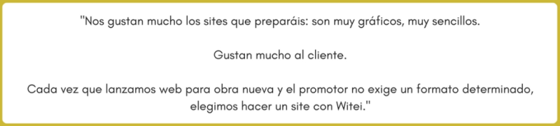 La entrevista prosigue tranquila. – Ramón, ¿Recomendarías Witei a un amigo o alguien que está empezando en el mundo inmobiliario? – «Si, sin duda. Witei como software inmobiliario es una gran herramienta, y vuestras webs, como escaparate son muy útiles.»
