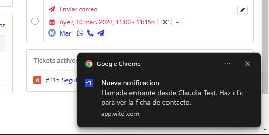 Si haces click en esa notificación, irás a la ficha del contacto que te está llamando.