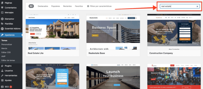 Y si en el buscador pones Real estate te aparecerán numerosos temas que puedes usar relacionado con agencias inmobiliarias. Pero no te limites por buscar un tema relacionado con Real Estate. Puedes escoger el que quieras.