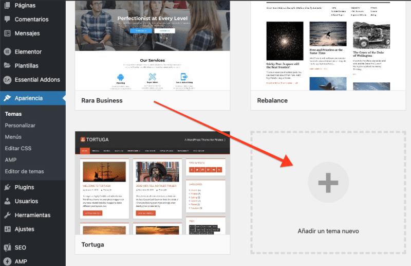 Por defecto WordPress te recomienda algunos temas, pero puedes elegir más dandole a añadir.