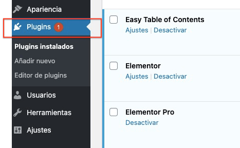 Puedes ver todos los plugins que hay desde el menú de la izquierda de tu panel de configuración.