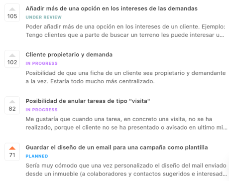Todas las sugerencias se pueden votar. De esta forma solo se dan prioridad a las que más se voten entre todos y a las que nuestro equipo de producto vea más urgente.