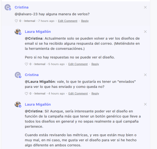La sugerencia es: «poder ver los diseños de email que se han enviado previamente» que puedes ver y votar desde aquí se hicieron bastantes comentarios para entender mejor la sugerencia.